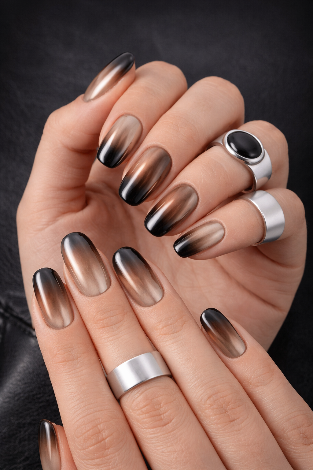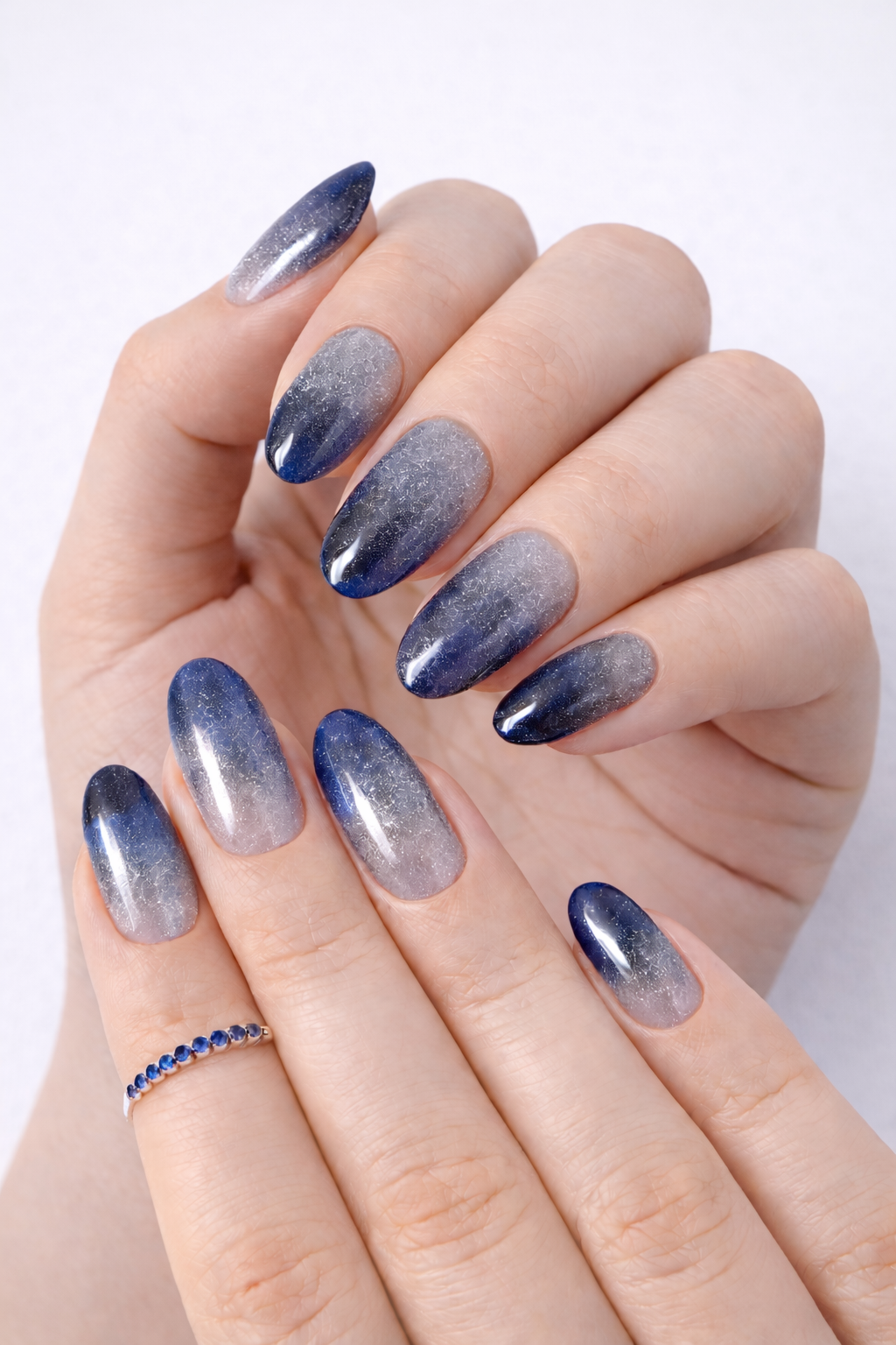 Ombre or gradient press-on nails feature a blend of two or more colors, creating a stylish and trendy look